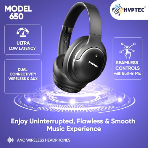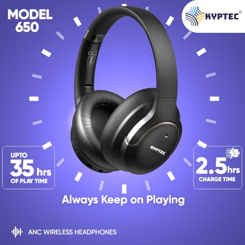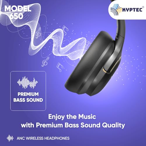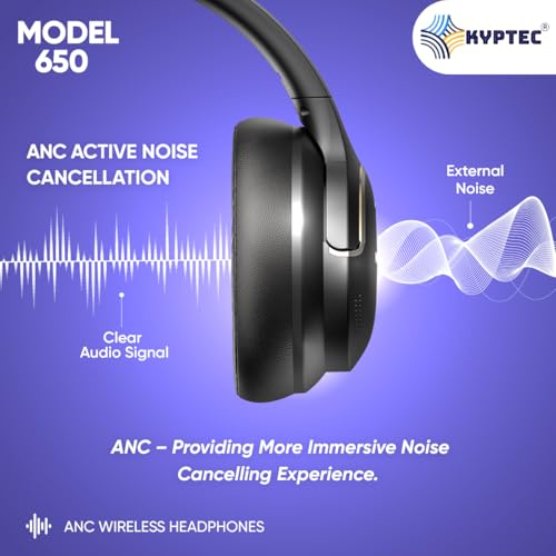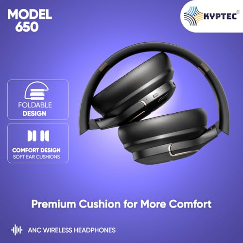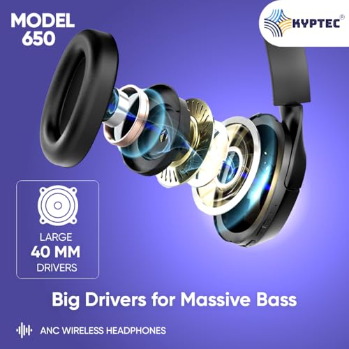 KYPTEC New Launch Model 650 ANC Bluetooth Wireless Headphones – Over Ear Noise Cancelling Headphone with Deep Bass, 35H Playtime, Large 40 MM Drivers, Triple Mics, Headphones Wireless with mic